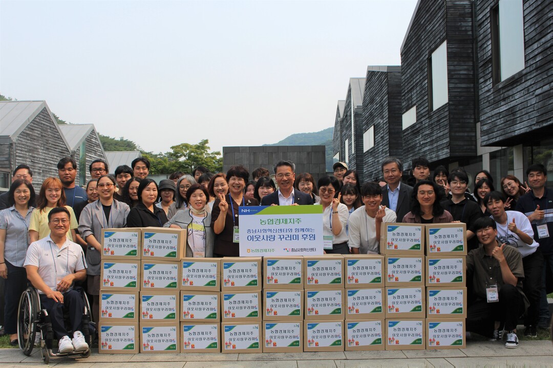 [하비엔뉴스 = 홍세기 기자] 농협경제지주가 지난 10일 충남 공주시 소재 한국문화연수원에서 충남사회혁신센터 주관 ‘로컬은 콩밭 시즌2’ 발족식에 참석해 이웃사랑 꾸러미 공동제작과 나눔 행사를 진행했다.