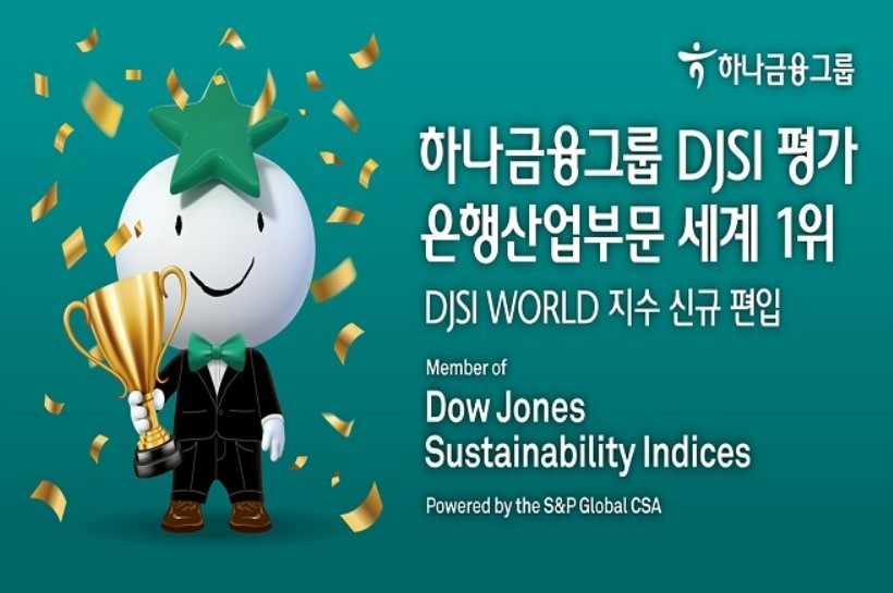 하나금융그룹은 전 세계 483개 은행 가운데 가장 높은 87점을 얻어 세계 1위에 올랐고, DJSI 최고등급인 DJSI 월드지수에 편입됐다. 올해 DJSI 월드지수에 편입된 금융사는 하나금융그룹을 포함해 프랑스 BNP파리바와 스페인 산탄데르·BBVA, 국립호주은행 등 모두 25곳이다.