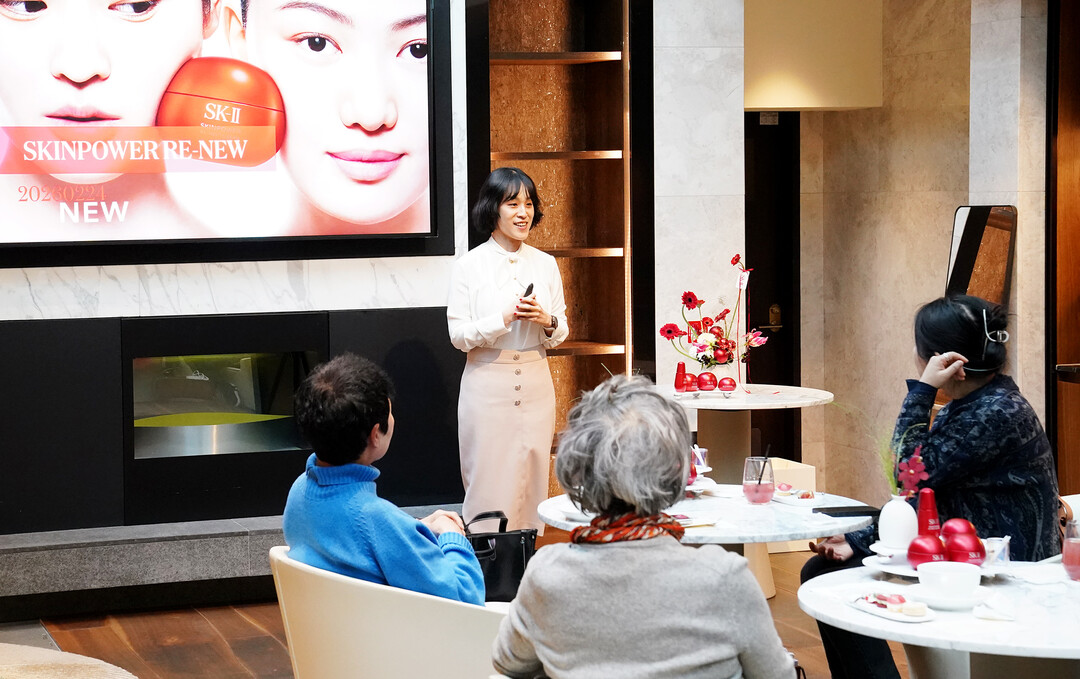 SK-Ⅱ와 협업해 성사된 이번 세션은 신제품인 스킨파워 리뉴 라인업 소개와 플라워 클래스 진행, 그리고 2대1 핸드 마사지 및 제품 컨설팅을 제공했다.