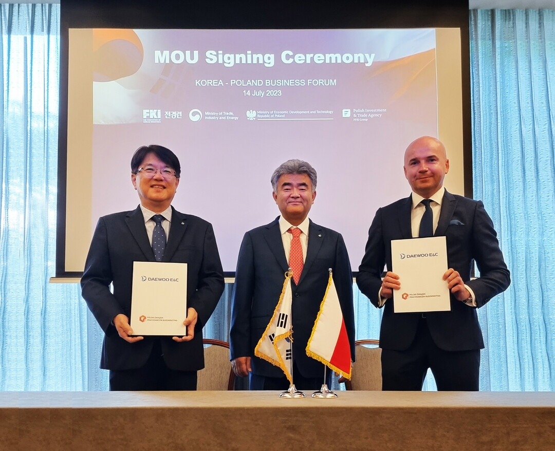 서명식에는 정원주 대우건설 회장, 이창양 산업통산자원부 장관, 발데마르 부다 폴란드 경제개발기술부 장관이 함께 자리를 빛냈다.