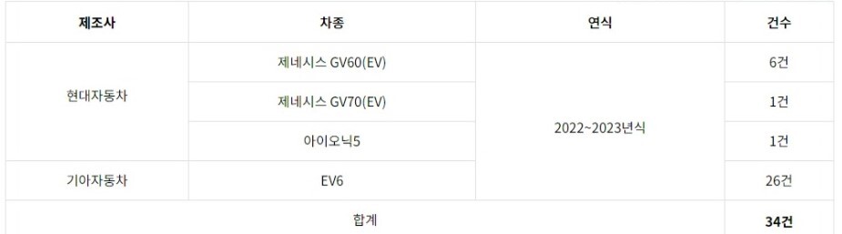소비자주권시민회의에 따르면, 지난 2월부터 최근까지 국토교통부 자동차리콜센터에 접수된 현대·기아차 전기차의 주행 중 동력상실 문제 관련 민원은 약 34건에 이른다. 올 2~6월 사이 교통 당국에 접수된 결함 의심 차종은 2022~2023년 생산된 기아 EV6(26건), 제네시스 GV60(6건), 제네시스GV70(1건), 현대 아이오닉5(1건)다.