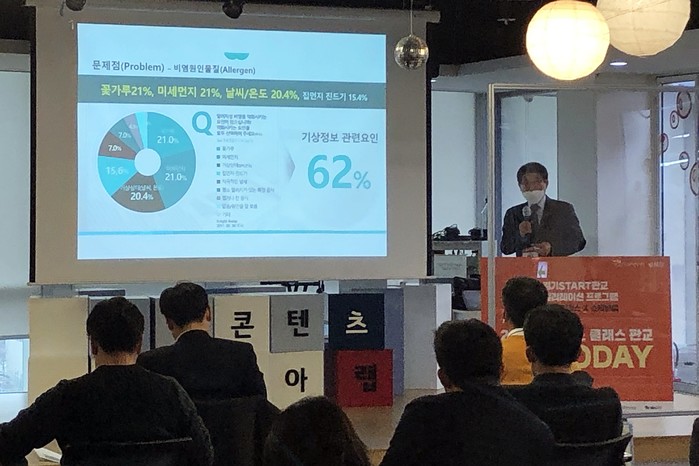 | ▲미린트 김용호 대표가 데모데이 참여해 발표를 하고 있는 모습(사진:코맥스벤처러스) |