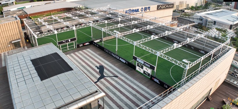 AK플라자 수원점 7층에 위치한 푸마타운 수원은 푸마에서 서울 이외 지역에 최초로 만든 브랜드 풋살장으로, 푸마만의 콘텐츠를 만날 수 있는 공간으로 리뉴얼됐다.