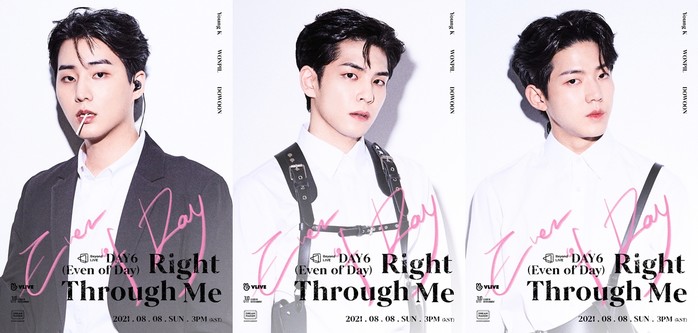 DAY6 (Even of Day)는 8월 8일 오후 3시 네이버 V LIVE(브이 라이브)의 비욘드 라이브 채널에서 온라인 콘서트 'Beyond LIVE – DAY6 (Even of Day) : Right Through Me'(비욘드 라이브 - 데이식스 (이븐 오브 데이) : 라이트 쓰루 미)를 유료 생중계하고 전 세계 팬들과 만난다. 이에 앞서 JYP엔터테인먼트는 각종 공식 SNS 채널에 멤버 3인의 개인 및 단체 포스터를 게재하고 공연 열기를 달궜다.