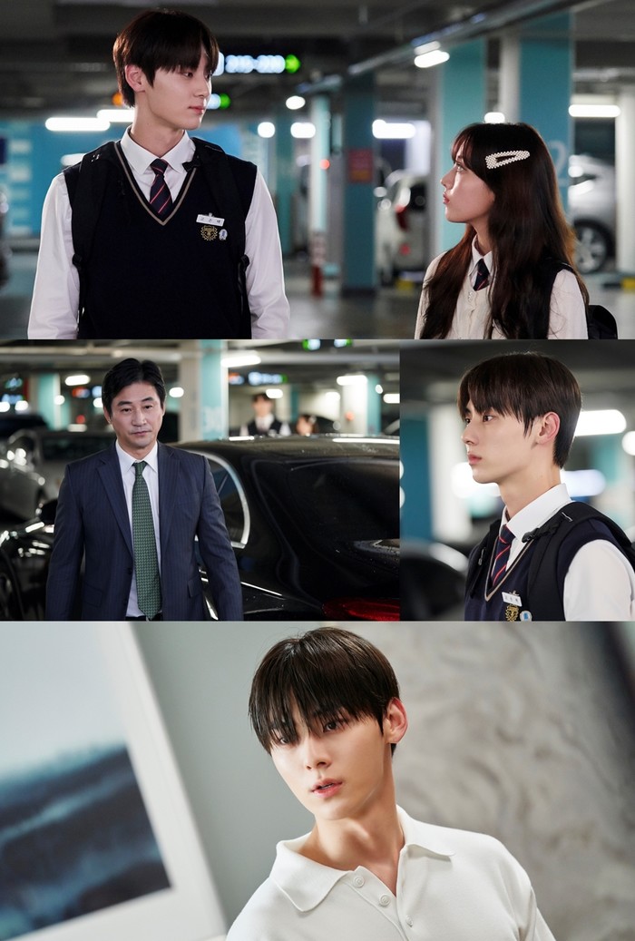 공개된 사진 속 함께 두런두런 대화를 나누며 귀가 중인 고은택과 백호랑(정다빈 분)은 아파트 지하 주차장에서 고은택의 아버지를 보고 걸음을 멈춘다. 굳어버린 고은택과 마찬가지로 차갑게 돌아선 아버지의 모습에서 두 부자간에 깊은 감정의 골이 있음을 짐작케 하고 있다.