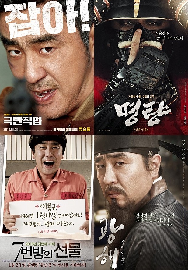 위장창업에 나선 마약반 5인방의 이야기를 그린 코믹 수사극 <극한직업>(1626만 명)에서 마약반의 만년 반장 ‘고반장’으로 분해 강력한 웃음을 선사했던 배우 류승룡은 역대 박스오피스 1위에 등극한 영화 <명량>(1761만 명)에서 이순신에 맞서는 왜군 용병 장수 ‘구루지마’ 역으로 열연을 펼치고, <7번방의 선물>(1281만 명)에서 누명을 쓰고 죄수가 된 여섯 살 지능의 딸바보 ‘용구’ 역을 맡아 관객들에게 웃음과 감동을 전했다.