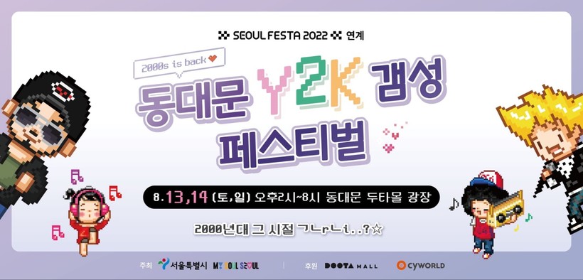 서울시가 주최하는 ‘동대문 Y2K 갬성 페스티벌’은 오는 13~14일까지 양일간 동대문 두산타워빌딩(두타몰) 앞 광장에서 진행된다.