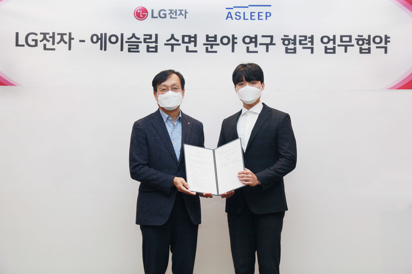 LG전자는 수면 진단 전문기업 에이슬립과 맞춤형 차세대 스마트 가전 개발에 나선다. 이를 위해 LG전자는 앞서 가산R&D캠퍼스에서 에이슬립과 수면 분야 연구 협력을 위한 업무협약(MOU)을 체결했다.