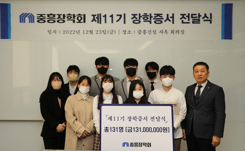 | ▲중흥장학회가 지역 고교생에 장학금 1억3100만원을 전달했다. [사진=중흥그룹] |