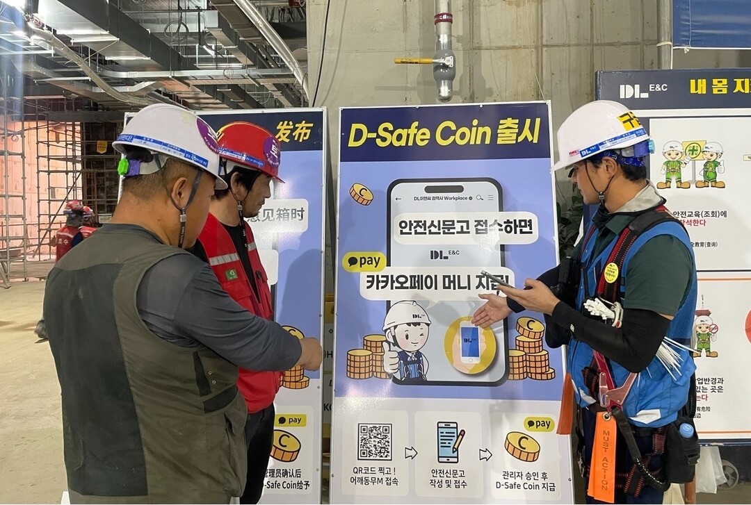 이번에 도입하는 D-세이프코인은 안전 관련 신고를 하거나 개선점을 제안한 현장 노동자에게 하루 최대 5000포인트를 지급하는 사내 인센티브 제도다. D-세이프코인 1포인트는 1원과 같다. 포인트는 카카오페이 머니로 전환해 쇼핑몰‧카페‧편의점 등에서 현금처럼 사용할 수 있다.