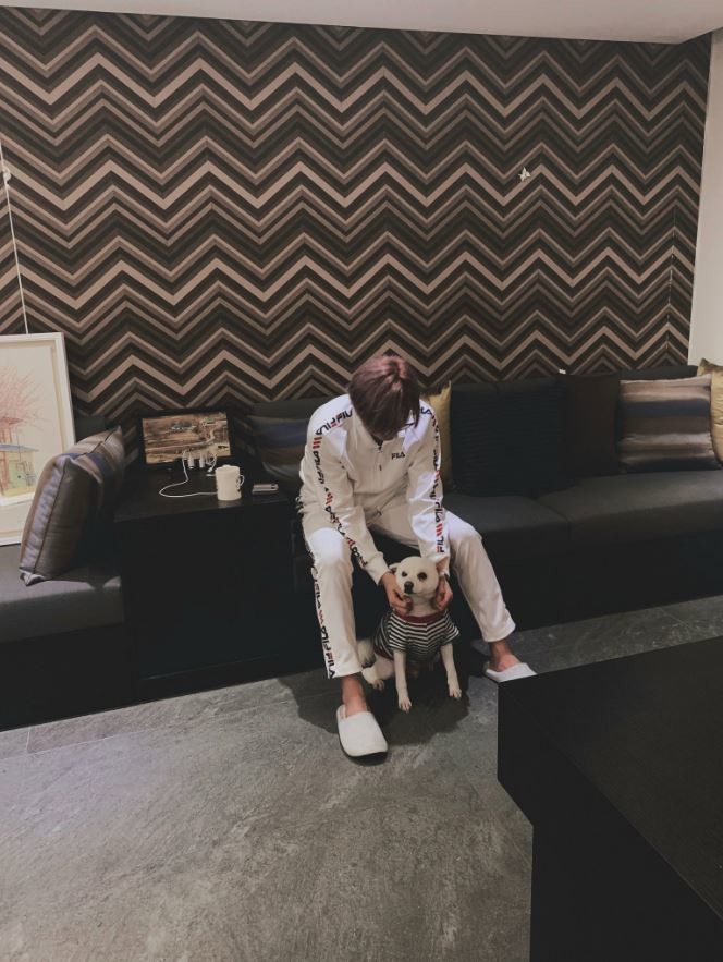 방탄소년단 리더 RM이 반려견과의 행복한 일상을 공개했다.