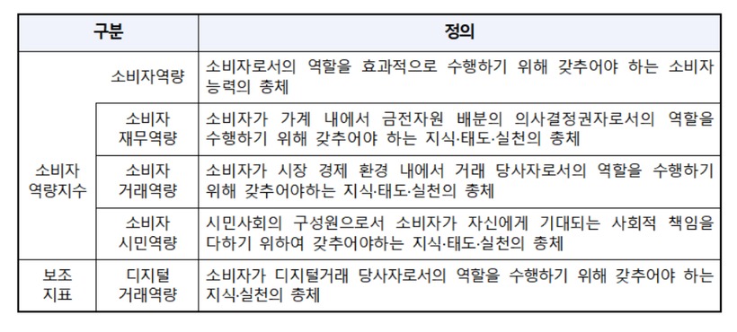 | ▲ 소비자 역량 영역별 정의. [사진=한국소비자원] |