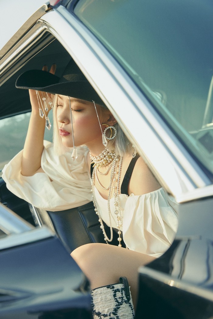 (유나) 헤어, 메이크업, 의상 모두 다 지금까지 보여드렸던 비주얼과는 확실히 달라졌어요. 개인적으로 채령 언니가 이번 콘셉트에 제일 잘 어울리는 것 같아요. 언니의 흩날리는 머리카락과 도도하고 카리스마 있는 표정이 매력적이에요.