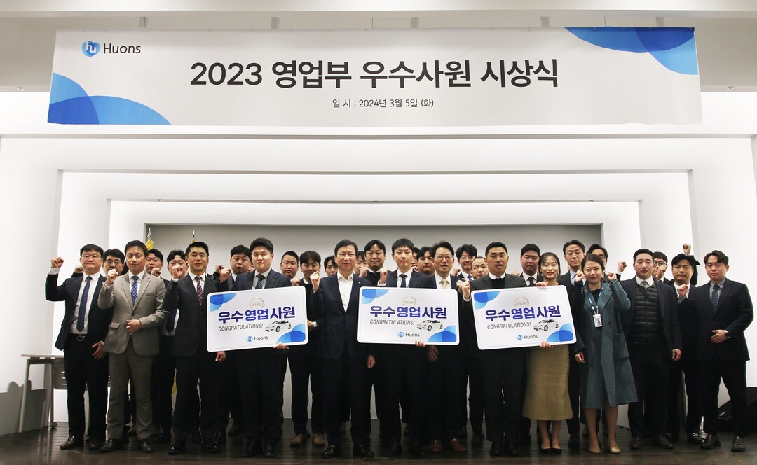 이날 치러진 휴온스 영업부 우수사원 시상식은 한해 동안 뛰어난 성과를 거둔 우수 영업사원과 지점을 선정해 차량 및 해외연수를 지원하는 대표 복지 제도로 지난 2014년부터 11년 연속 시상의 시간을 갖으며 영업사원들의 사기진작과 노고를 치하해왔다.