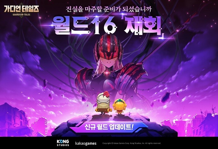 카카오게임즈는 미국 개발사 콩 스튜디오가 개발한 모바일 RPG ‘가디언 테일즈’에 월드 16 ‘재회’를 업데이트했다.