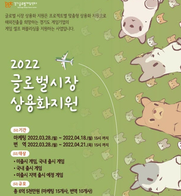 경기도는 게임 기업의 해외시장 직접 진출을 지원하기 위한 ‘2022년 글로벌시장 상용화 지원’(이하 ‘상용화 지원’) 참가기업을 모집한다고 밝혔다.