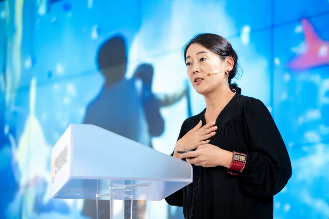 | 강연 중인 엄윤설 대표. [사진=넷마블] |