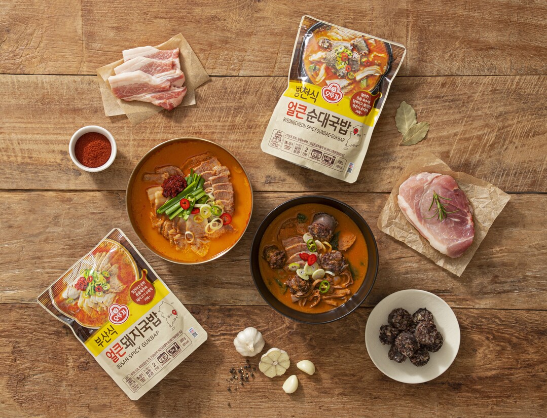 오뚜기는 다대기를 따로 넣지 않아도 얼큰하게 즐길 수 있는 ‘지역식 얼큰 국밥’ 2종을 내놨다.