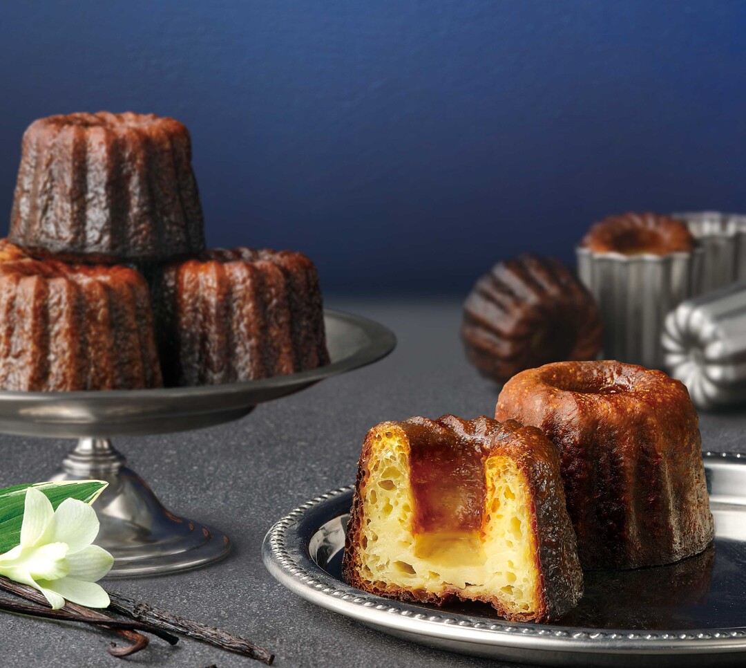 ‘주름을 잡은, 골이 진’이라는 뜻의 까눌레는 우유, 계란, 밀가루, 바닐라, 럼 등을 섞은 반죽을 구운 프랑스 전통 과자다. 파리바게뜨는 균일한 열 전달이 가능하도록 가운데가 움푹 들어간 형태로 구현해 까눌레의 바삭한 식감을 한층 더 살렸다.