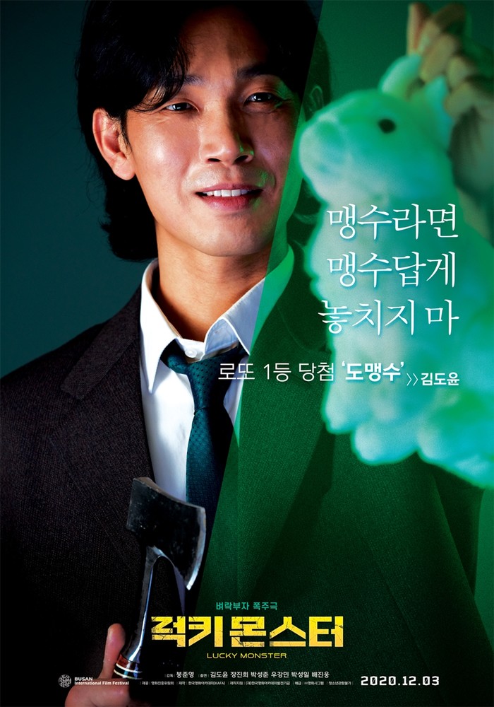 오늘(3일) 개봉한 영화 <럭키 몬스터>는 빚더미 쭈구리 인생을 살고 있는 도맹수(김도윤)가 의문의 환청 럭키 몬스터(박성준)의 시그널로 로또 1등에 당첨된 후, 위장이혼 뒤 사라진 아내 성리아(장진희)를 찾아 나서며 벌어지는 일들을 그린 벼락부자 폭주극이다.
