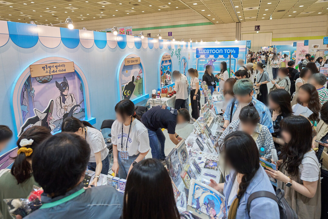 행사 기간 일반 부스의 3배 규모로 마련된 카카오웹툰 스튜디오 부스는 작품을 배경으로 사진을 찍을 수 있는 포토존과 굿즈 판매 공간으로 꾸려졌다. 특히 엽서, 포토카드, 스티커, 봉제 인형, 아크릴 키링, 그립톡 등 각 작품별로 마련된 굿즈들이 매진을 이어가면서 IP를 향한 인기를 입증했다.