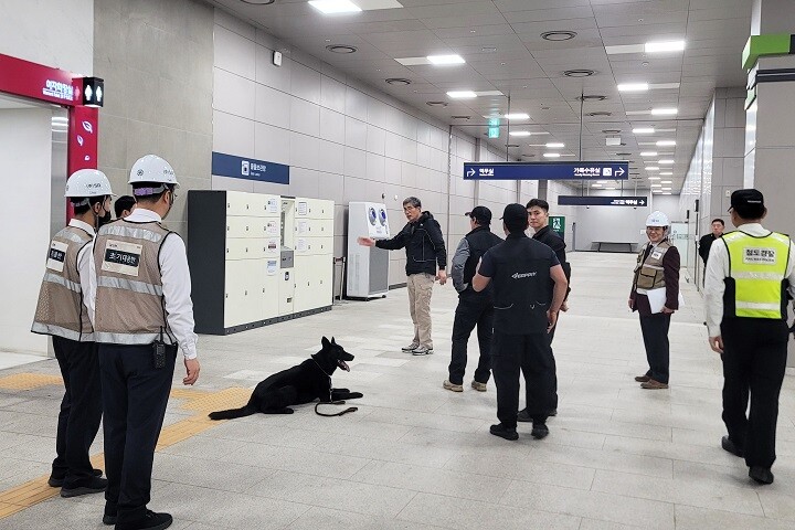 이날 훈련은 SRT와 함께 수도권광역급행철도(GTX)-A 열차가 정차하는 동탄역사 내 폭발물 테러상황에 대비해 탐지견과 탐지장비를 투입하는 등 현장 대응능력 강화에 초점을 맞춰 진행됐다.