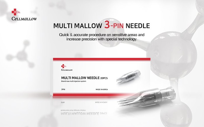 MULTI MALLOW 3 Pin Needle 은 연약한 피부 부위에 수작업으로 주사하기 때문에 안전하다. 특히 눈, 입, 목 및 두피 치료와 같은 민감한 부위에도 균일한 깊이에 활성 성분 적용을 촉진해 정밀도를 높였다.