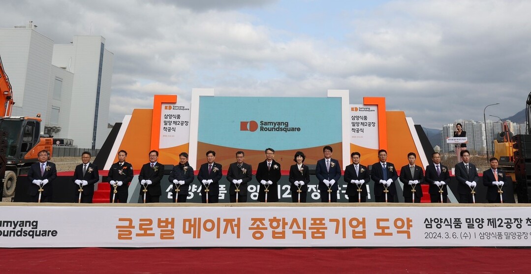이날 삼양식품은 김정수 삼양라운드스퀘어 부회장, 김동찬 삼양식품 대표이사, 권재한 농림축산식품부 농업혁신정책실장, 김명주 경남도 경제부지사, 허동식 밀양시장 권한대행, 김춘진 한국농수산식품유통공사 사장 등이 참석한 가운데 밀양2공장 착공식을 가졌다.
