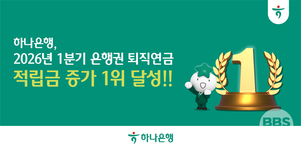 하나은행은 2023년부터 2025년까지 3년 연속 은행권 퇴직연금 적립금 증가 1위를 기록한 데 이어, 2026년 1분기에도 또다시 적립금 증가 1위를 달성했다고 강조했다.