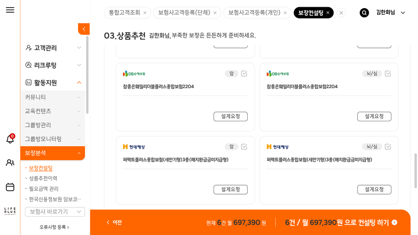 | ▲한화생명금융서비스 오렌지트리 상품추천 화면 [사진=한화생명금융서비스] |