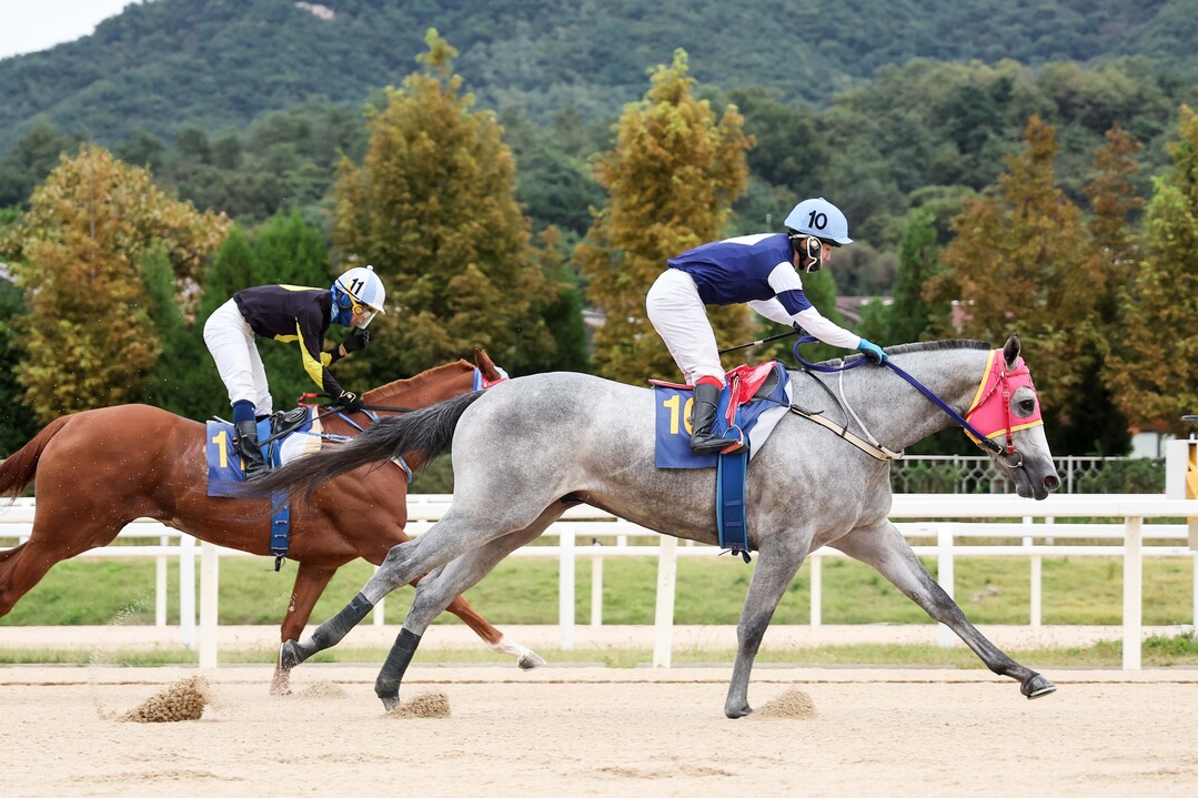 암말 삼관마인 ‘즐거운여정’에 밀려 2인자의 자리를 지키고 있지만, 그간 출전한 전 경주에서 3위 밖으로 나간 적이 없다. 특히 최근 눈에 띄게 좋은 걸음을 보이며 경상남도지사배에서는 ‘즐거운여정’을 제치고 5마신차 낙승을 기록해 이같은 추세라면 이번 경주도 기대해 볼만하다.