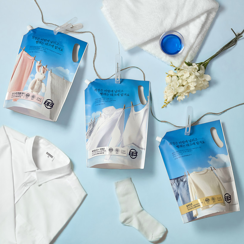 이번 컬래버 세제는 지난 13년간 국내 판매 1위 자리를 지킨 베스트셀러 ▲테크 베이킹소다+구연산 ▲테크 진드기 사체 배설물 제거 ▲테크 실내건조 3종으로 구성됐다.