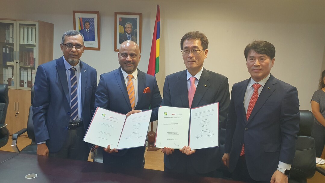 | 23일 모리셔스 도로청에서 함진규 한국도로공사 사장(왼쪽에서 3번째)과 모리셔스 인프라부 마헨드라누스 허리람 장관(왼쪽에서 2번째)이 업무협약 체결 후 기념촬영을 하고 있다. [사진=한국도로공사] |