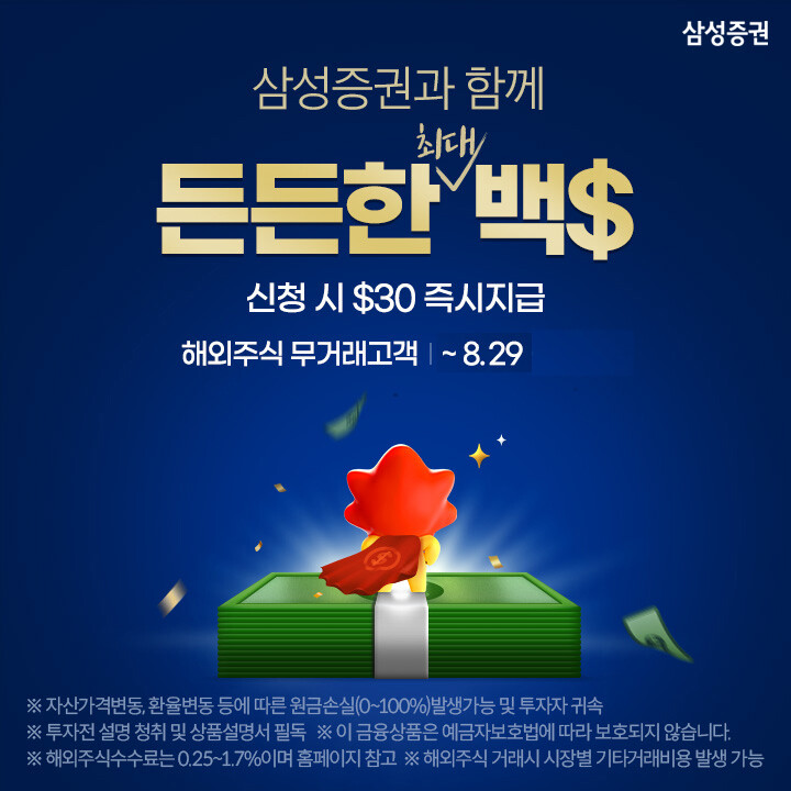 [하비엔뉴스 = 홍세기 기자] 삼성증권이 해외주식 거래가 없었던 고객을 대상으로 최대 100달러를 지원하는 이벤트를 오는 29일까지 진행한다.