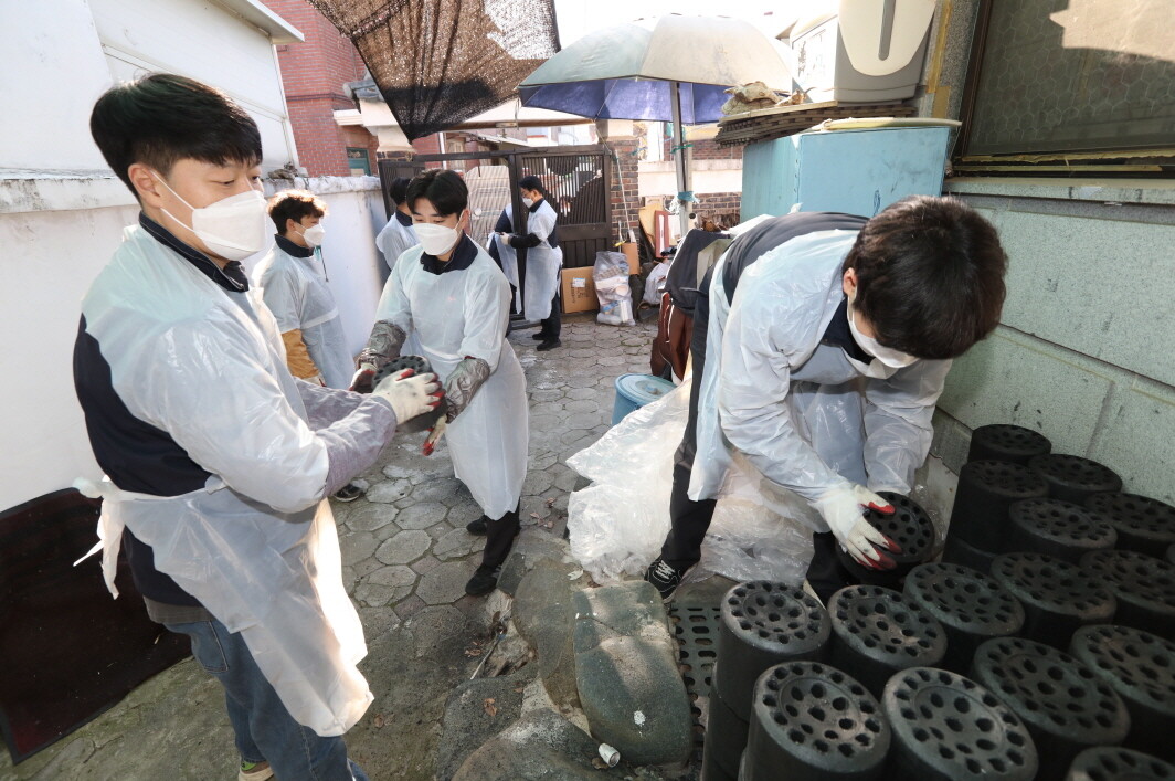 | 지난 7일 충북 청주시 우암동 일대에서 진행된 연탄 나눔 봉사활동. [사진=LG생활건강] |