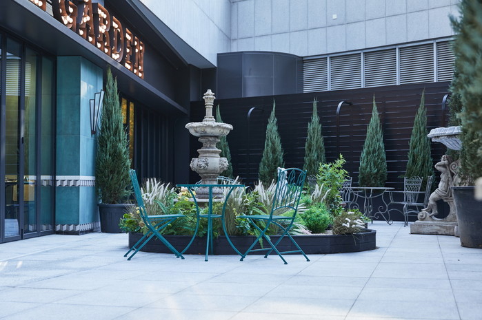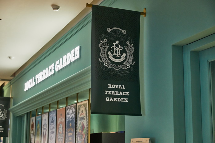로얄테라스가든은 ’영국의 정원과 모로코의 만남’을 컨셉으로 런던의 헤롯(Harrods) 백화점 로티서리샵에 착안하여 현대 디자인의 아버지인 윌리엄 모리스의 우아한 패턴으로 이루어진 벽지와 타일 그리고 아르데코풍의 장식으로 꾸며졌다.