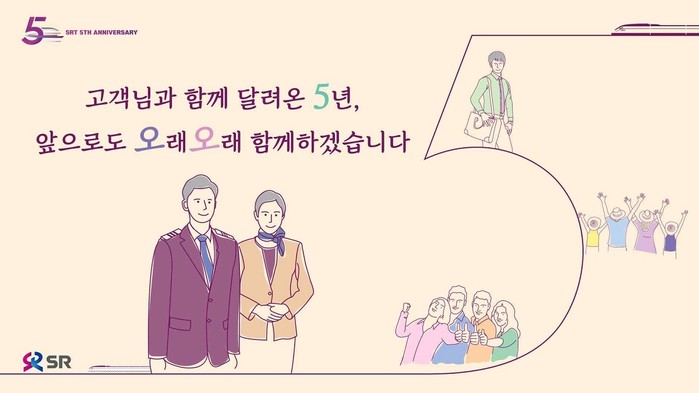 [하비엔=문기환 기자] SRT 운영사 SR은 9일 SRT 개통 5주년 및 누적 이용객 1억명 돌파를 기념해 경품 행사 등 다양한 기념 고객감사행사를 연다.