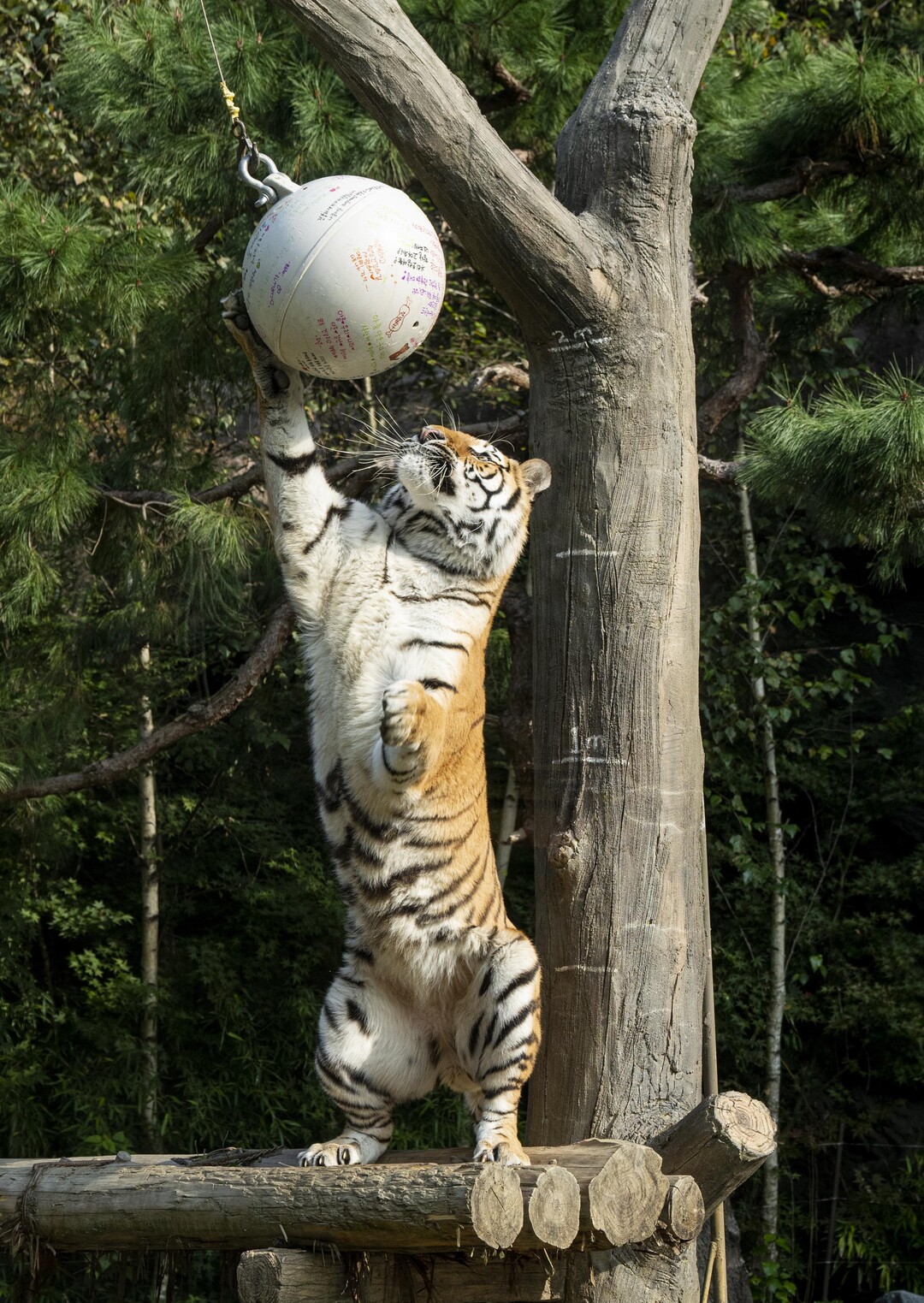 | 에버랜드 동물원의 호랑이가 인리치먼트 공을 가지고 노는 모습. [사진=에버랜드] |