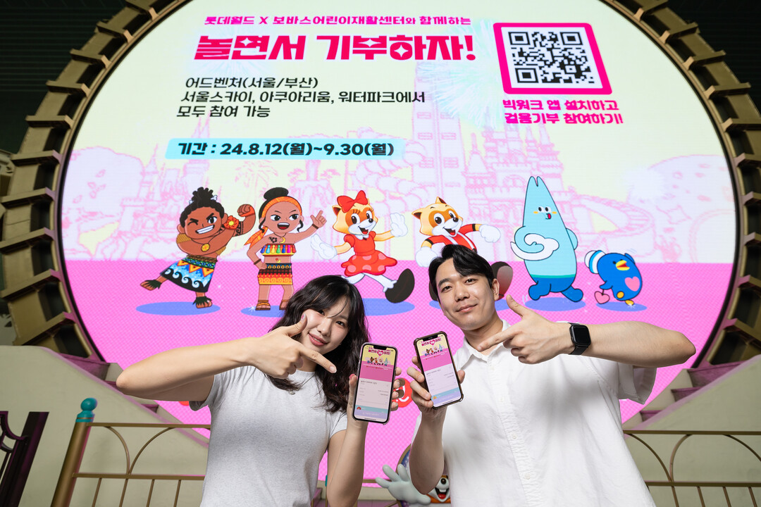 지난해에 이어 올해도 롯데월드 어드벤처와 어드벤처 부산, 롯데월드 아쿠아리움, 서울스카이, 김해 롯데워터파크 5개 사업장이 참여하는 캠페인은 걸음 수를 집계해 기부금을 적립하는 ‘빅워크’ 애플리케이션을 통해 진행된다.