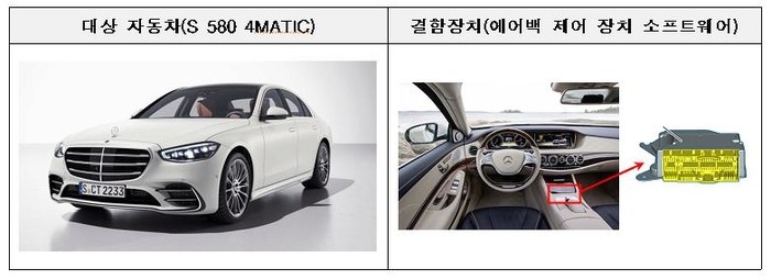 먼저 메르세데스-벤츠가 수입·판매한 S580 4MATIC 등 7개 차종 773대는 에어백 제어 장치 소프트웨어의 오류로 충돌 시 조수석 에어백이 전개되지 않을 가능성이 확인되는 등 안전상의 문제가 제기됐다.