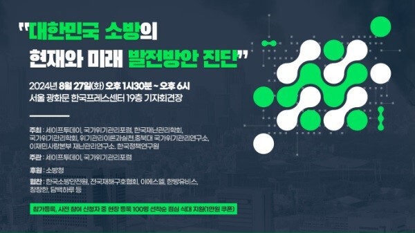 세이프투데이와 한국재난관리학회, 국가위기관리학회, 위기관리 이론과 실천, 충북대 국가위기관리연구소, 이재민사랑본부가 공동 주최하는 이번 포럼은 권설아 충북대 국가위기관리연구소 재난안전혁신센터장이 사회를 맡아 ‘소방의 현재와 미래 발전 방안’을 진단한다.