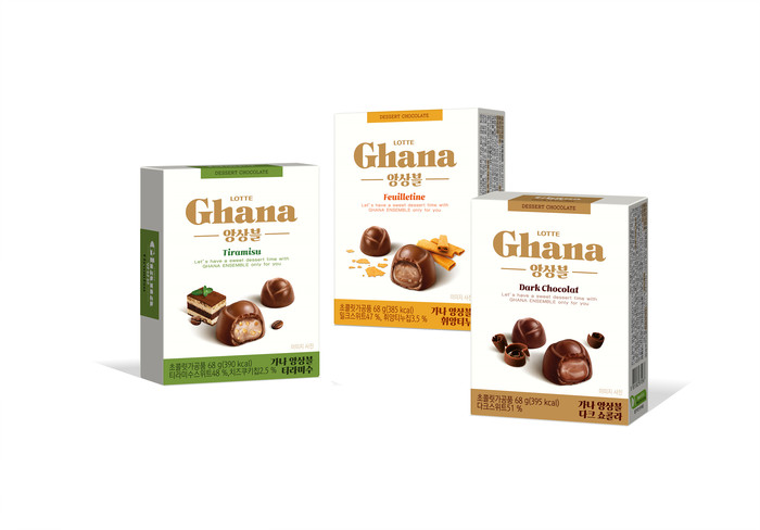 | ▲ 롯데제과 디저트 초콜릿 ‘가나 앙상블’ 3종. [사진=롯데제과] |