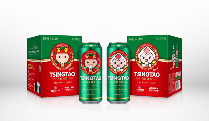 ‘칭따오X웹젠 프렌즈 한정판’은 칭따오 라거 500ml 제품에 뮤 온라인의 대표 캐릭터 ‘뮤다’와 ‘제니’의 얼굴을 적용한 디자인이 눈길을 끈다.