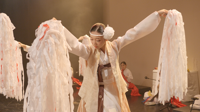 평택 지역의 독특한 명칭인 ‘재랭이 고개’는 음기가 강한 터이자 수많은 사람들의 기원과 바람이 쌓여 있는 장소로, 과거 무당들이 신을 맞이하고 넋을 달래며 사람들의 한을 풀어주는 굿을 열었던 곳이다. 이번 공연은 이러한 역사적·문화적 배경을 바탕으로, 과거의 넋을 기리고 미래를 기원하는 의식을 무대 예술로 재해석해 선보였다.