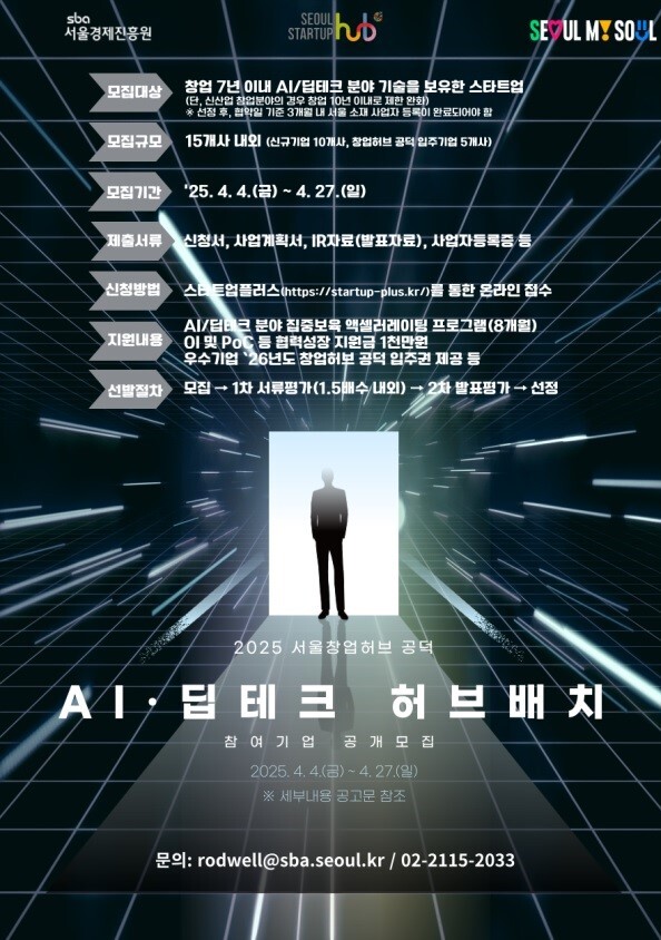 주용태 서울시 경제실장은 “AI·딥테크는 고도의 기술력과 자본이 요구되는 분야인 만큼 기술개발부터 투자유치, 수요처 연계까지 단계별 맞춤형 지원이 중요하다”며 “시는 창업허브를 통해 스타트업이 안정적으로 성장하고 글로벌 경쟁력을 키울 수 있도록 실질적인 지원을 이어가겠다”라고 말했다.