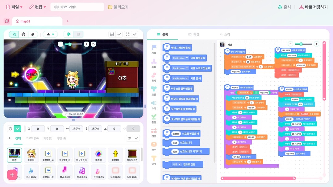 넥슨이 제공하는 월드는 ‘피해야 산다!’ ‘우리 학교 숨은 그림 찾기’ ‘맞춰봐! O·X 퀴즈’ 등 리메이크가 가능한 다양한 장르의 콘텐츠로, 특히 현직 선생님이 직접 제작한 ‘두더지를 잡아라’ ‘고기 갖다주기’ 등 100종 이상의 미니게임 월드가 마련됐다.