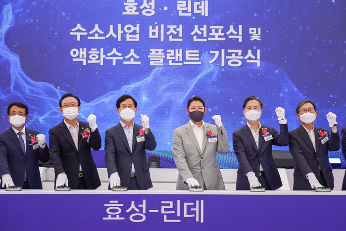이날 행사에는 조현준 효성 회장과 성백석 린데코리아 회장을 비롯해 송철호 울산시장, 박진규 산업통상자원부 차관, 조현상 효성 부회장, 이상운 효성 부회장 등이 참석했다.