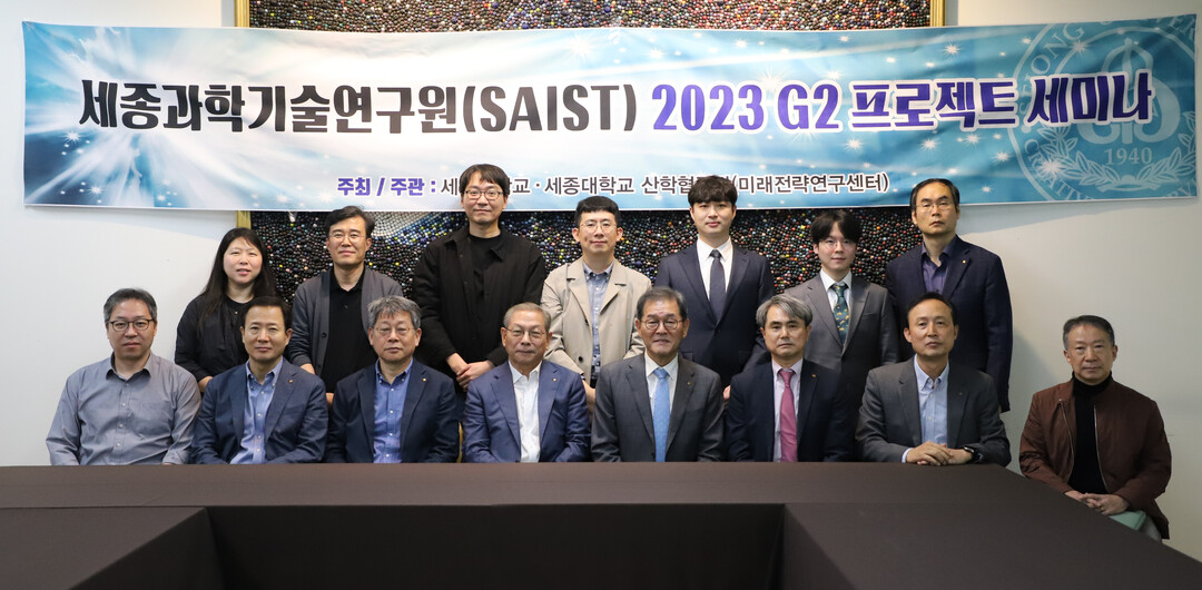 | 지난 3일 세종대 대양AI센터에서 열린 세종과학기술연구원(SAIST) G2 프로젝트(시스템반도체) 세미나에서 참가자들이 기념촬영을 하고 있다. [사진=세종대학교] |