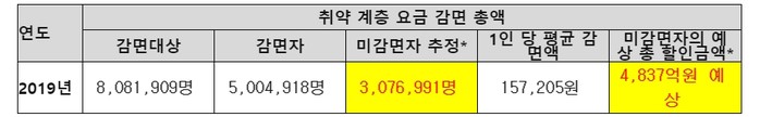 | ▲ 2019년 이통3사 취약계층 요금 미감면 추정 현황 |