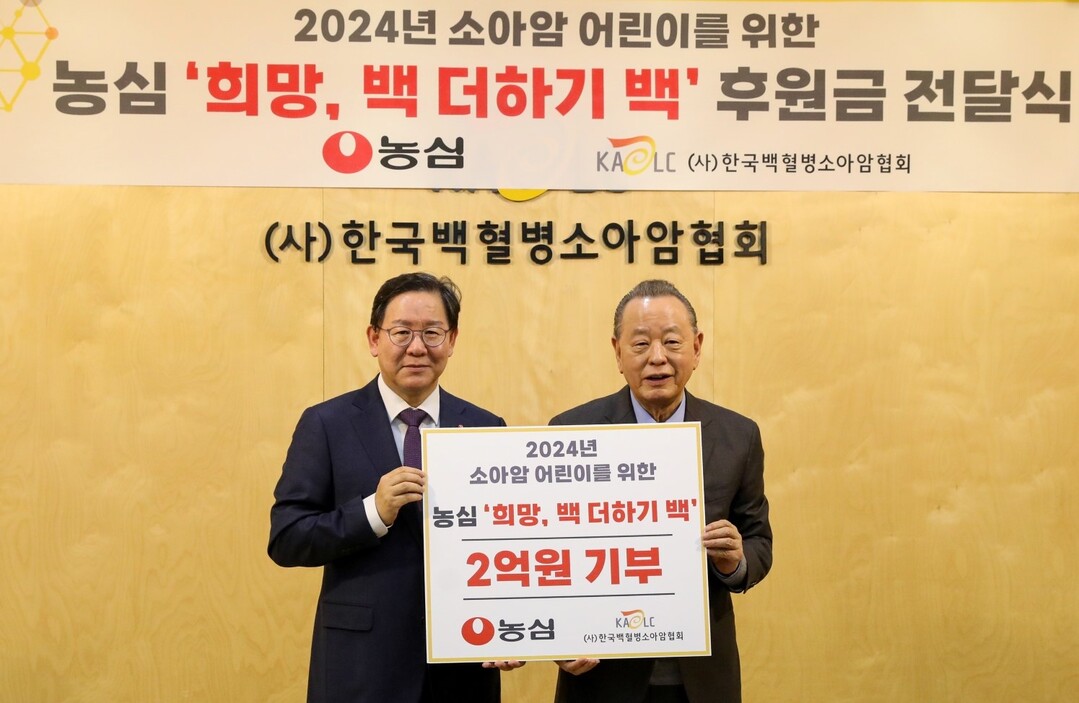 [하비엔뉴스 = 윤대헌 기자] 농심은 지난 5일 한국백혈병소아암협회와 후원금 전달식을 갖고 연간 총 2억원 상당의 현금과 백산수를 지원한다고 6일 밝혔다.